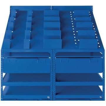 Erleichtert die Arbeit Einschließlich 20 Halter zwei verschiedene Längen: 190 mm und 60 mm zur sicheren Aufbewahrung und zur Aufnahme geschnittener Profilstangen von weniger als 1 m Einschließlich zwei großen Schubladen für erforderliches Zubehör Inklusive zwei einfachen Regalen