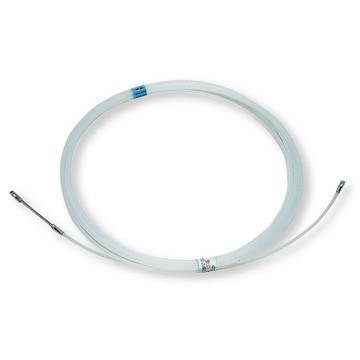 Einziehband aus Polyamid für ein hohes Maß an Schubstabilität und gerades Zurückstellen des Bandes nach Biegungen, mit Öse und Suchfeder (10 cm) sehr flexibel für hohe Geschwindigkeiten und müheloses Durchgleiten des Leerrohrnetzes