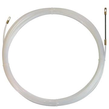 Einziehband aus Polyamid für ein hohes Maß an Schubstabilität und gerades Zurückstellen des Bandes nach Biegungen, mit Öse und Suchfeder (10 cm) sehr flexibel für hohe Geschwindigkeiten und müheloses Durchgleiten des Leerrohrnetzes