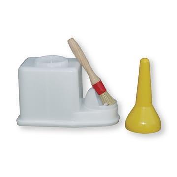 Praktischer Spar- und Vorratsbehälter mit Pinsel zum Auftragen von Leim, Lack, Kontaktkleber, diversen Lösungsmitteln